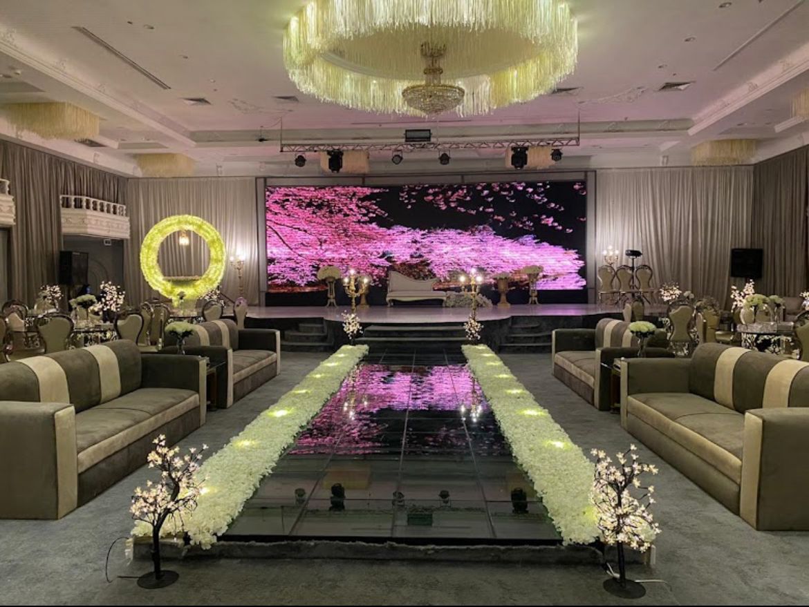 [ السعر ] 20 الف اخر الاسبوع 18 الف وسط الاسبوع [ قسم النساء ] البوفيه ١٢متر ضيافه الطاولات علي ٢٠طاوله كوشه الكترونيه معجنات وحلي مشكل شاي وقهوه وعصير ومياه وعاملات كيكه العروسه اجهزه الليزر والبخار دي جي طوال الحفله جميع زفات مجانيه ورد الدرج مجانا فازات ورد صناعي علي الطاولات عامله عبايات [ قسم الرجال ] نقدم شاي وقهوه مجانا